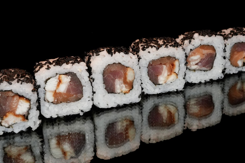 Рис, нори, кунжут ч/б, тунец, лосось с/с, угорь
