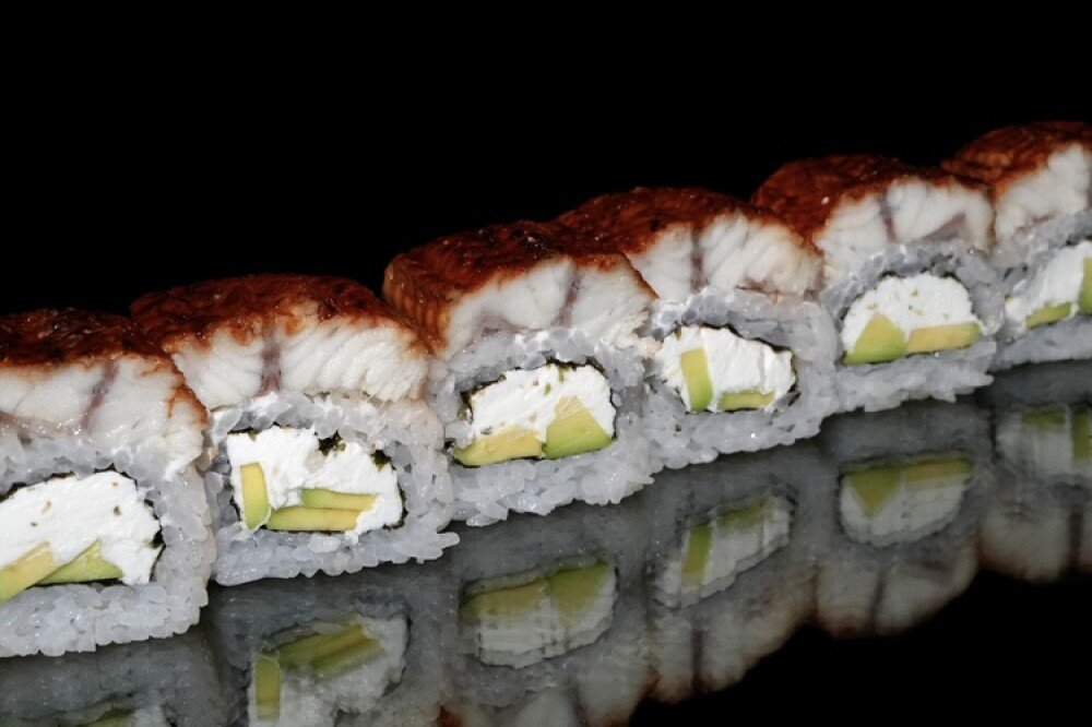 Рис, нори, творожный сыр, авокадо, угорь, унаги